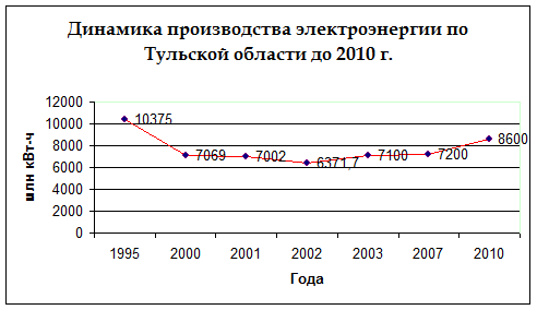 В 2005 году дефицитный баланс потребления энергии сложился в пяти российских регионах. В 2006г. их стало 16. Через два года в число дефицитных перейдет половина российских областей, а к 2011 году – вся страна. Тульская область пока не входит в этот перечень. Однако, хорошие темпы, которыми развивается областная экономик, а также складывающийся баланс потребления показывает, что через три-четыре года и нам грозит та же участь.