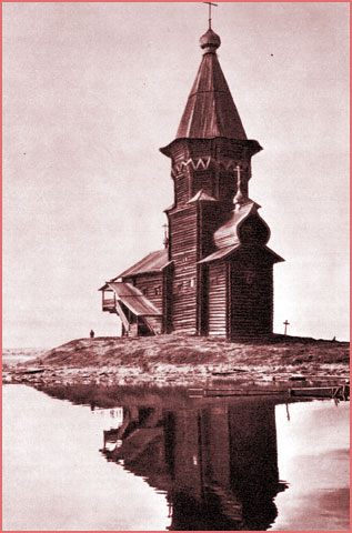 Образный лад - суровый и героический - укоренился во всем народном зодчестве и стал одной из его самых типических и ярких особенностей. Силуэты величественных церквей, возвышающихся где-нибудь в Кеми или Коле, Кондопоге или Кулике, невольно вызывают в памяти образы былинных богатырей, стоящих в неусыпном дозоре вдоль всей северной границы.
