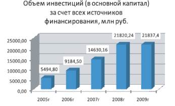 В связи с начавшимся в 2008 году экономическим кризисом в 2009 году ожидается незначительный рост объемов инвестиций: в целом по муниципальному образованию к уровню 2008 года до 104,9 %.