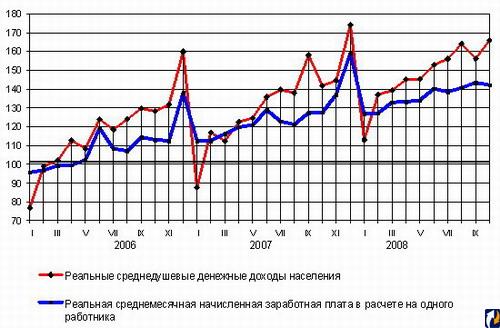 Среднемесячная номинальная начисленная заработная плата в 2008 году увеличилась по сравнению с 2007 годом– на 31,3%.