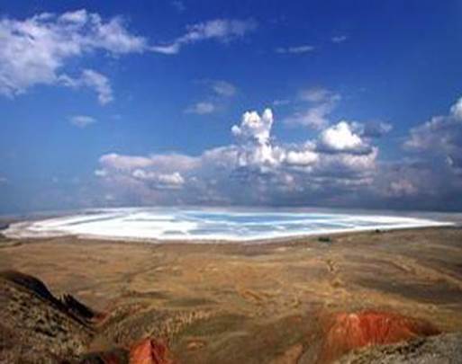 На южном берегу озера стоит гора Богдо — единственная настоящая гора в Прикаспийской низменности.
