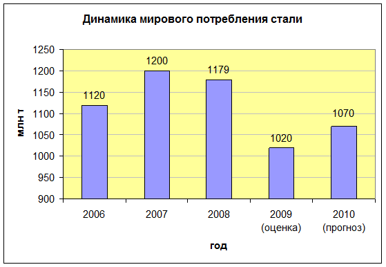 Тем не менее, в 2009 году потребление стали в Китае, по оценкам China Iron and Steel Association (CISA), снизится на 5% , до 430 млн. т. В 2010 г. китайское потребление увеличится максимум на 5% (всего на 21 млн. т).