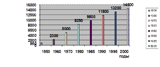 Согласно прогнозам, к 2010 году мировое потребление электроэнергии может возрасти до 18-19 трлн. кВт.час, а к 2020г.- до 26-27 трлн. кВт. ч. соответственно будут возрастать и установленные мощности электростанций мира, которые уже в середине 1990-х г превысил и уровень 3 млрд. кВт.