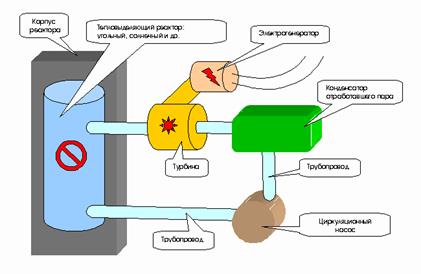 Принципиальная схема АЭС с ядерным реактором, имеющим водяное охлаждение, приведена на рис. 2.