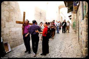 Стандартная программа для паломников, приезжающих в Израиль, рассчитана на десять дней. За это время они успевают побывать на священной горе Синай, в Назарете, Вифлиеме, Хевроне и в Иерусалиме. В Святом городе находится главная христианская святыня - Гроб Господень. Путь к нему начинается с Масличной горы, с которой открывается незабываемый вид на весь Иерусалим. Спустившись в Кидронскую долину, паломники попадают на дорогу, по которой схваченного в Гефсиманском саду Христа вели к первосвященнику. Петляя, она выходит на узкую и шумную улицу восточного Иерусалима, которая называется Виа Долороза, что в переводе с латыни означает - Скорбный путь. Эта дорога для любого человека, принадлежащего христианской культуре, верующий он или нет, священна. По ней, изнемогая под тяжестью креста, шел на Голгофу Сын человеческий, чтобы принять мученическую смерть. Вряд ли можно с уверенностью утверждать, что Виа Долороза в точности совпадает с тем путем, по которому Христос поднимался на холм. Но для тысяч паломников, которые идут по ней к Храму Гроба Господня, это не так и важно.