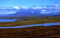 В Шотландии широко распространены скалистые холмы и болота, а в ее центральных и западных районах преобладают горы. Сама высокая точка – гора Бен-Невис в Грампианских горах – достигает всего 1343 м, несколько других вершин поднимаются выше 1200 м. Однако имеется ок. 300 вершин, превосходящих 900 м, и многие горы производят внушительное впечатление, поднимаясь почти от самого берега моря. В горах Шотландии нет четко выраженных хребтов, при взгляде сверху открывается масса беспорядочно рассредоточенных вершин, разделенных глубокими узкими долинами, называемыми гленами, или вытянутыми узкими озерами-лохами. Долина Глен-Мор, вмещающая три озера (Лох-Несс, Лох-Лохи и Лох-Линне) и продолжающаяся в подводных долинах на обоих концах, отличается прямолинейными очертаниями; она простирается с юго-запада на северо-восток и разделяет всю горную Шотландию на две части. На всей этой расчлененной территории часто встречаются обнажения коренных пород, и только в нижних частях склонов гор и в гленах имеются пастбища и пашни. В последнюю четверть 20 в. Шотландии проводились обширные лесопосадки.