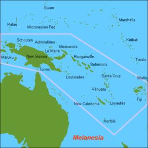 Меланезия — совокупность островных групп в Тихом океане, чьи коренные жители не говорят ни на полинезийских, ни на микронезийских языках, а также являются темнокожими. Меланезия расположена к северо-востоку от Австралии.