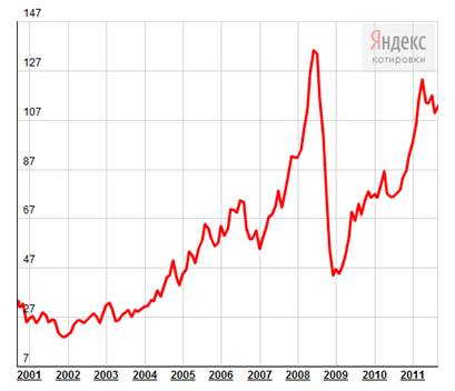 Правда, все равно не до 8-12 долларов, и даже не до 30, как нас иногда пугают в СМИ. Хотя на панике и спекуляции вполне вероятно временное снижение котировок до уровня 40-50 долларов.