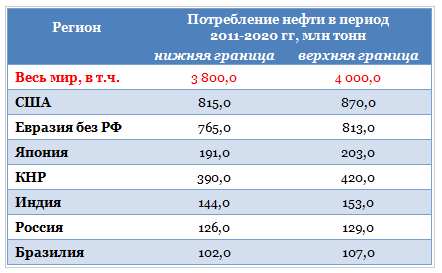 4. Прогноз потребления нефти на период 2011-2020 гг.