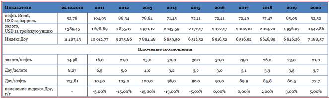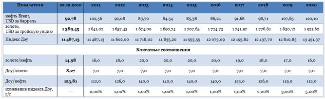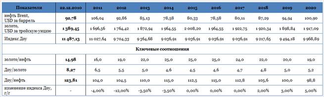 • соотношение «Доу/золото» опустится к 2011 году до уровня 7,0 – но ниже не пойдет;