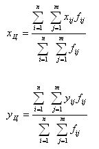 Теперь рассмотрим получение координат х, у, - по фрагментам изображений. Остановимся здесь только на случае маркированных точек. Для нахождения соответствующих координат точки левого и правого снимков достаточно найти координаты центра маркированной точки на этих снимках. Большинство авторов [4, 8, 10] решает этот вопрос следующим образом. Фрагмент изображения рассматривают как некоторое материальное тело и применяют к нему известный из математического анализа метод вычисления моментов различного порядка [11]. Для дискретного изображения размером m х n пикселей можно записать