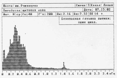 kв – коэффициент выбросоопасности, представляющий собой отношение амплитуд высокочастотной и низкочастотной составляющих спектра акустического сигнала; разделение спектра на высокочастотную и низкочастотную составляющие, вычисление коэффициента kв производится автоматически на аппаратуре МакНИИ по его программе.