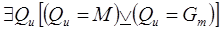 — логический союз «или» разделительное, требующий выполнения одного, и только одного из связываемых им высказываний. В целом, условие (7) читается как «существует хотя бы одно такое множество Qu (входящее в систему