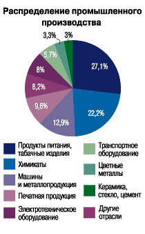 пищевая промышленность - 27%,машиностроение - 12,4%.