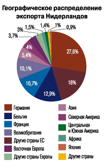 На Голландию приходится свыше 4% мировой торговли. А по уровню экспорта на душу населения Нидерланды занимают одно из первых мест в мире. При этом в последние годы правительство Нидерландов продолжает принимать различные меры по стимулированию экспорта.