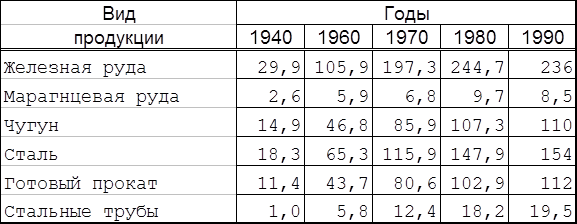 Динамику развития черной металлургии можно проследить по данным таблицы: