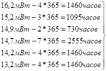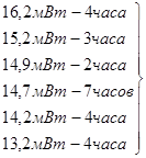 =14.7*7+16.2*4+14.2*4+15.2*3+14.9*2+13.2*4=352.7 МВт*час