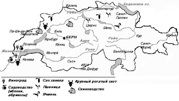 Основные с/х культуры - это пшеница, ячмень, сах. свекла, картофель, кормовые травы. Под пашней занято около 6% площади страны. Главные районы зерновых культур находятся на Швейцарском плоскогорье и в долине Рейна. В кантоне Тессин возделывается виноград, из которого делают белое столовое вино. В нижней части долины Роны произрастают абрикосы и яблоки.