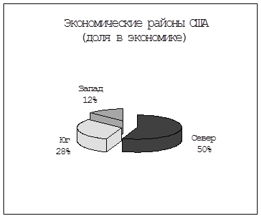 В настоящее время на территории США можно выделить три экономических района, которые кратко можно назвать Север (дает 2/3 продукции обрабатываемой промышленности, основную часть зерновых культур, молока и мяса), Юг, Запад.\