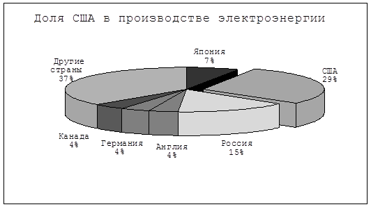 Очень быстро растет производство электроэнергии. В настоящее время США является лидером в этой отрасли.