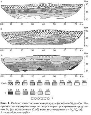 В результате интерпретации сейсмических материалов были построены сейсмофизические модели насыпных гидротехнических сооружений: земляного полотна Шипуновского водохранилища и дамбы Карасевского водохранилища.