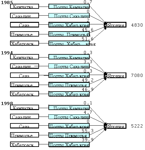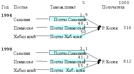 Таблица 4. Схема экспортных потоков дальневосточного леса на Ю. Корею