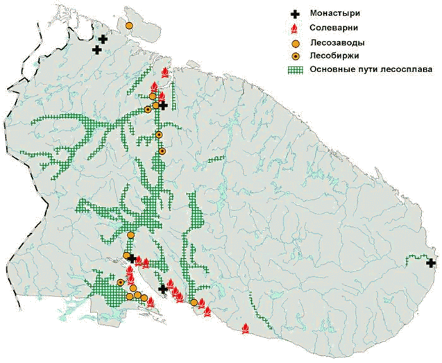 Люди «культуры морских охотников» оставили следы своей деятельности в основном по побережью и в устьях больших рек. Их основным занятием была охота на морского зверя и рыболовство. Появившиеся вслед за ними саамы жили уже и в центре полуострова, занимались охотой, рыбной ловлей, и, впоследствии, оленеводством. Их воздействие на леса было незначительным, в частности потому, что их культуре было свойственно очень бережное и осторожное обращение с огнем. Потребление леса резко усилилось в XV-XVI вв., в связи с расселением поморов и основанием монастырей. Основными потребителями древесины были солеварни, на выварку 1 пуда соли в которых уходило около 1 кбм. дров. Основными районами солеварения на Кольском Севере являлись селения по берегам северо-западной части Белого моря и Кольского залива. По мере истребления лесов вокруг варниц их производительность сокращалась, предприятия становились малодоходными и, затем, прекращали свою деятельность. По-видимому, именно солеварение стало причиной исчезновения наименее устойчивых сосновых лесов по северным рекам полуострова.