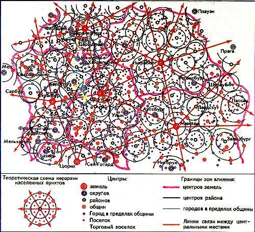 Докторская диссертация немецкого ученого Вальтера Кристаллера "Центральные места Южной Германии" была опубликована в 1933 г. В ней была изложена теория оптимального размещения городов, призванная улучшить территориальную организацию общества и усовершенствовать административно-территориальное деление Германии.