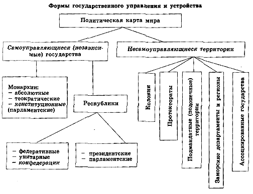 Формы государственного устройства и правления. Независимые государства и несамоуправляющиеся территории.