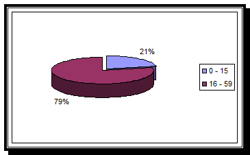 Как показывают данные(см. график пункта 2),наибольшее распределение количества жителей приходится на возраст от16 до 59 лет, что свидетельствует о неуклонном старении области, а значит и о её вымирании, что является результатом слабой инвестируемости региона, отсутствием вложений в оборотные активы и не заинтересованностью человеческих ресурсов во вложении своих трудовых качеств в развитие данного региона, из за слабых возможностей полной самореализации.