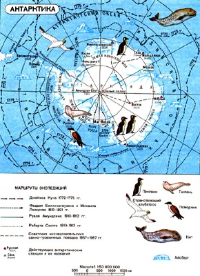 океанов и острова. Этот район называют теперь Южным Ледовитым океаном. Площадь Антарктики — около 52,5 млн. км2, материка Антарктида — около 14 млн. км2