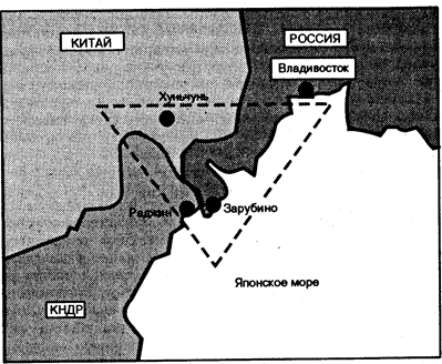Рис. 10. Зона международного сотрудничества «Туманган» (обозначена пунктирной линией)