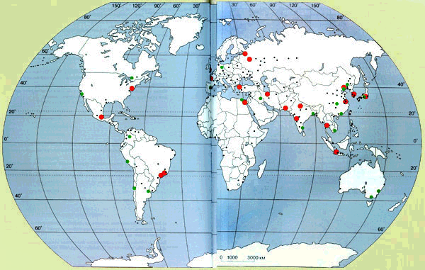 Если в начале 20 в. всего лишь 14% населения Земли проживало в городах и насчитывалось 16 городов-миллионеров, то к 1950 г. доля урбанизированного населения возросла более чем в 2 раза, а число городов-миллионеров - почти в5. Ожидается, что к 2000г. половина жителей Земли будет горожанами, а число городов-миллионеров составит 440.