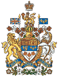 Наиболее важной частью герба является расположенный в центре щит, на котором изображены четыре эмблемы, символизирующие четырех основателей Канады –
