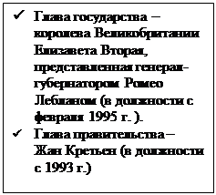 Глава государства: британский монарх (в настоящее время королева Великобритании Елизавета II)