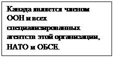- Канада является членом НАТО (высокий стратегический потенциал, наличие военный базы за рубежом), ООН (положительное отношение к разоружению, косвенное отношение к вооруженным конфликтам), Британского Содружества.
