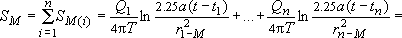 Определим по принципу сложения решений понижение уровня в некоторой точке