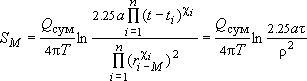 по форме аналогично действию одной скважины, находящейся на расчетном расстоянии