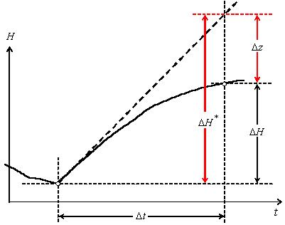 | Рис. 3. Теоретический и фактический подъем уровня за период питания |