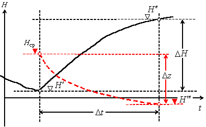 Явный недостаток: фактически интенсивность оттока при подъеме уровня возрастает, так как увеличивается разность уровней между участком расположения скважины и дреной. Недоучет этого обстоятельства приводит к занижению поправки