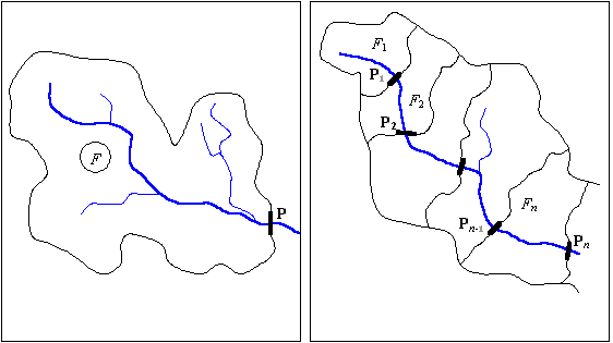 | Рис. 7. Метод замыкающего створа | Рис. 8. Метод частных водосборов |