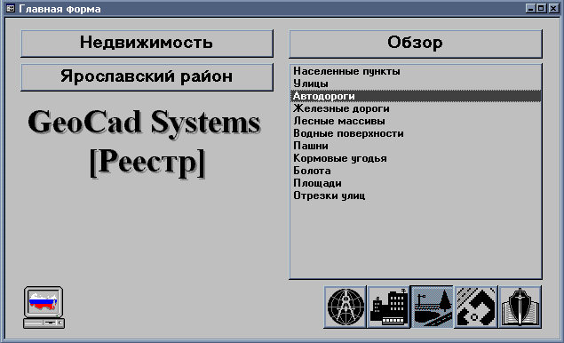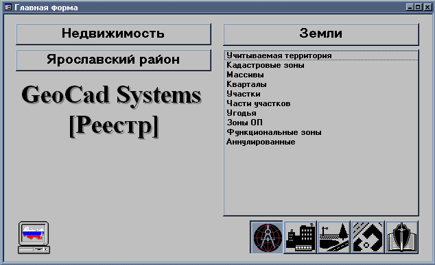 Модульная многоцелевая кадастровая система Geocad System 3.1/3.2 представляет собой систему взаимосвязанных баз данных (Access 2.0 и Access 97 в соответствии с версией системы), средств ввода, обработки и отображения семантической (атрибутивной) и пространственной информации различных территорий.