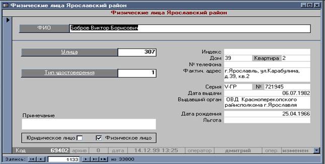 В основе организации банка данных лежит стандартная технология Microsoft Access: