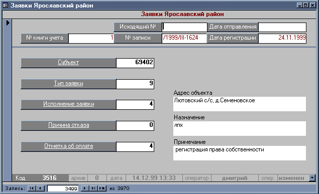 Внесение записей в Единый государственный реестр прав на недвижимое имущество при отсутствии указанных противоречий и других оснований для отказа или приостановления государственной регистрации прав производится на магнитный носитель, для хранения всей базы данных используется программа Geocad 3.2.