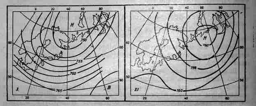 Изменения в атмосферном давлении влекут за собой соответствующие изменения в направлении и скорости ветра. Следовательно, изменчивость погоды может быть в ряде случаев объяснена изменчивостью барического поля.