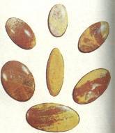 7. В настоящее время в Крыму известны следующие виды самоцветного сырья: халцедоны, сердолики, агаты, гелиотропы, аметисты, опалы, гагат; в качестве поделочного сырья могут быть использованы яшмы, окаменелое дерево, гипсы, декоративные мраморовидные известняки, гравеллиты и ряд изверженных пород.