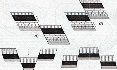 · разрывные нарушения, расчленяющие земную кору на блоки различных размеров, включая мелкую трещиноватость (дизъюнктивные дислокации);