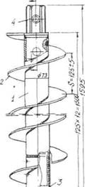 а - шнек (установка УГБ-50А): 1 - труба; 2 - спираль; 3 - втулка; 4 - хвостовик; 5 - палец соединительный; 6 - фиксатор;