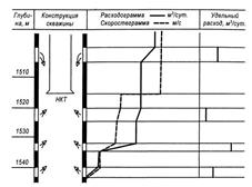 Рис. 5.Профиль притока по расходометрии [по А.И. Ипатову, М.И. Кременецкому].