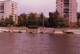 Железобетонные шпунтовые сваи прямоугольного сечения и сваи с пазом и гребнем также не удалось забить без зазоров, что привело к полному вымыванию грунта из под нижних площадок лестниц на спуске к реке.